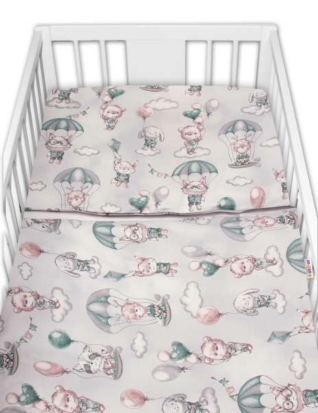 Baby Nellys 2-dílné bavlněné povlečení, Létající zvířátka, zelené