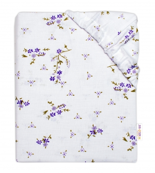 Bavlněné prostěradlo, Levandule, Baby Nellys, bíla/fialová; 120x60