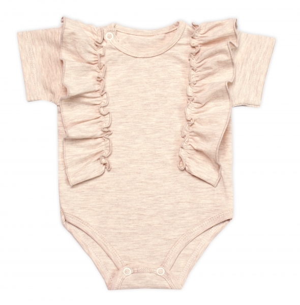 Body kr. rukáv s volánkem, bavlna, zapínání vzadu, Emily Mrofi, béžový melírek, vel. 86; 86 (12-18m)