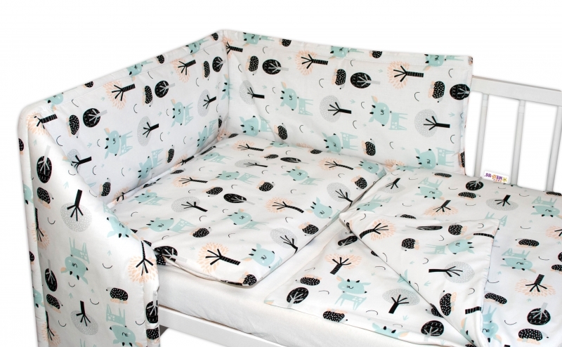 Baby Nellys 3-dílná sada Mantinel s povlečením - Srnečci, bílá, 135 x 100; 135x100