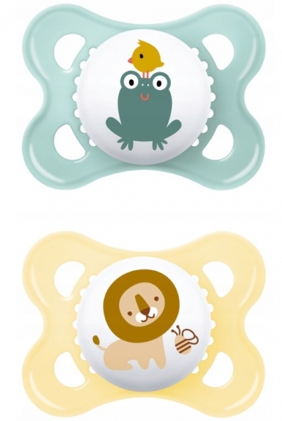 Ortodontický silikonový dudlík MAM, Original Unisex 2-6 m, žlutá/khaki, 2 ks