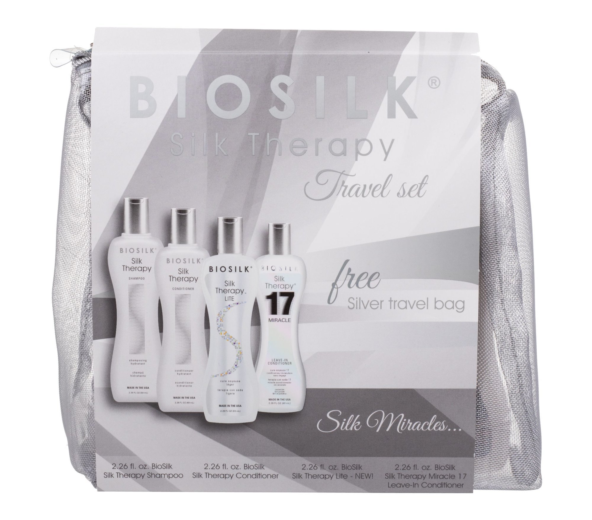 Farouk Systems Biosilk Silk Therapy šampon 67 ml + kondicionér 67 ml + sérum na vlasy Silk Therapy Lite 67 ml + bezoplachový kondicionér 17 Miracle 67 ml + kosmetická taška