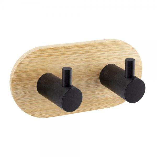 Wieszak ścienny z dwoma haczykami, wykonany z czarno lakowanej stali. Montaż nie wymaga wiercenia, wieszak montuje się na taśmie 3M o wysokiej przyczepności. Wieszak ścienny pomaga uporządkować przestrzeń w łazience. przeczytaj całość