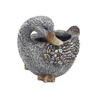 Dekorační květináč husa.Rozměry : 28,5 × 22,5 cm, výška 25,5 cm.Barva : kombinace šedá s barevnými kamínky.Materiál : magnesium. przeczytaj całość