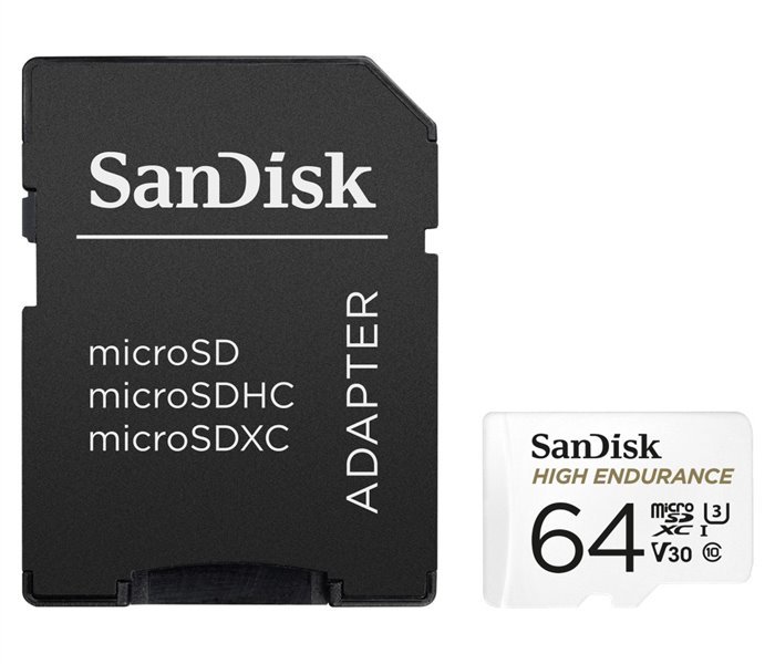 Karta pamięci formatu micro SDXC oferuje pojemność 64 GB. Prędkość odczytu to do 100 MB/s a prędkość zapisu do 40 MB/s. W zestawie znajduje się adapter SD.