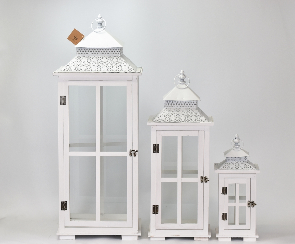 Sada 3 ks dřevěných luceren do interiéru.Materiál: dřevo, skloRozměry:velká lucernavýška 84,5 cmšířka 33 cmhloubka 33 cmstřední lucernavýška 64 cmšířka 25 cmhloubka 25 cmmalá lucernavýška 40,5 cmšířka 17 cmhloubka 17 cm przeczytaj całość