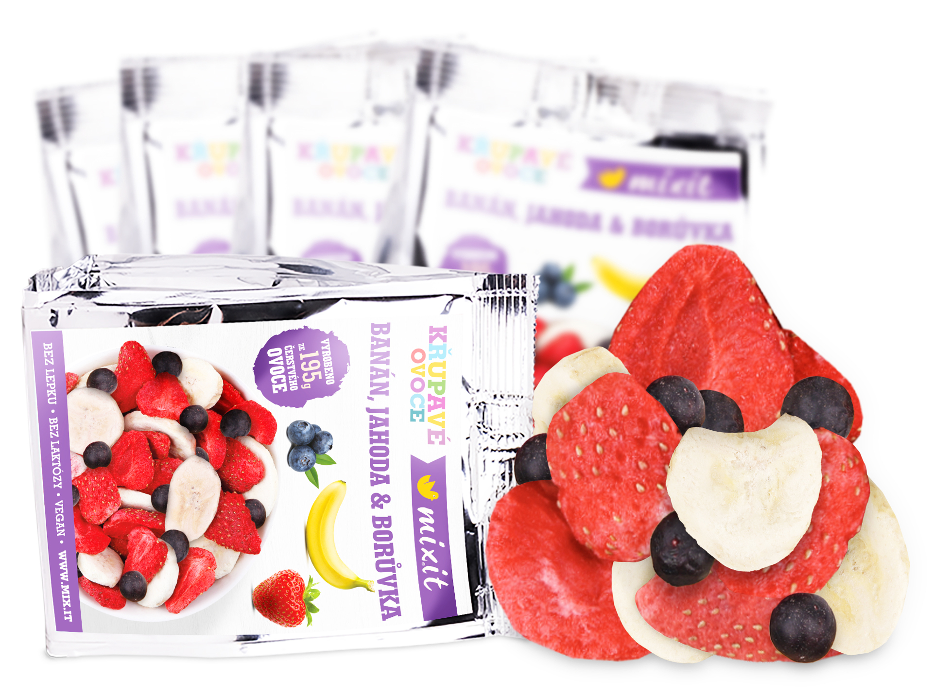Banan bogaty w błonnik, potas i magnez, dzięki któremu ciśnienie nie wzrośnie nawet w najbardziej stresującym dniu w pracy. Truskawka, która poprawia funkcjonowanie serca i mózgu, dzięki czemu twoje ciało będzie dosłownie naładowane energią, a umysł jasny jak gwiaździste niebo. I wreszcie borówka, która oprócz wielu innych zalet działa jako profilaktyka przedwczesnego starzenia się, więc zawsze będziesz wyglądać na dwadzieścia. To nowy mix do kieszeni, idealny na lato! Smaczna przekąska w podróży lub do biura.
