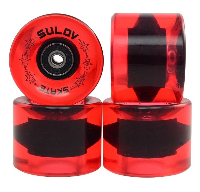 Kolečka Penny board RED TRANSPARENT 60 x 45mm 85A, sada 4ks, s ložisky