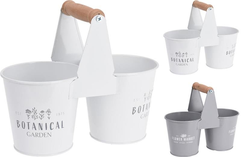 Dvojitý dekorační květináč doplní každou domácnost, terasu i zahradu. Do dvou menších květináčů si vysadíte bylinky nebo okrasné rostlinky dle libosti. Díky kvalitnímu plechovému provedení ho můžete používat jak ve vnitřních, tak venkovních prostorech. Snadno ho přenesete pomocí praktického dřevěného madla. Barevné provedení dodáváme náhodně.