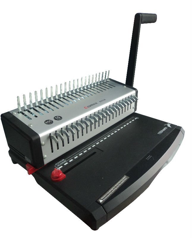 Wiązarka pierścieniowa Comix B2938 przeznaczona jest do formatów A4 i A5, sprawdzi się szczególnie w każdym biurze. Maszyna do bindowania potrafi związać jednorazowo do 450 arkuszy, liczba oczek wiążących wynosi 21. Docenisz także solidną i stabilną konstrukcję oraz regulowany margines papieru. Wiązarka waży 5,5 kg. Drut wiążący wykonany jest z plastiku. System wiązania obsługiwany jest dźwignią.