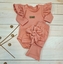 Body s volánky, legíny do zvonu a čepička, 3D, bavlna, meruňková, vel. 80