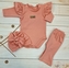 Body s volánky, legíny do zvonu a čepička, 3D, bavlna, meruňková, vel. 74; 74 (6-9m)