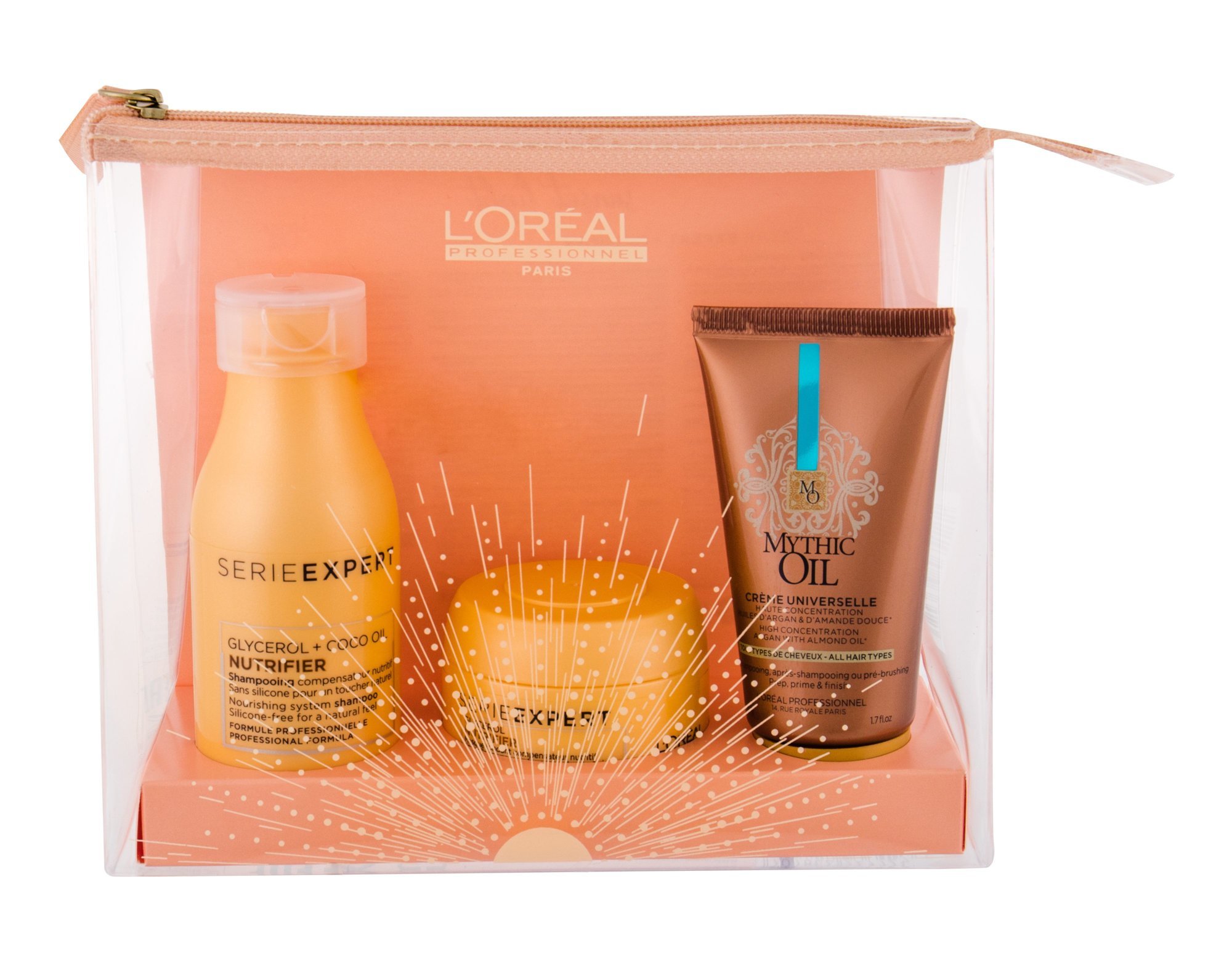 L´Oréal Professionnel Série Expert šampon 100 ml + maska na vlasy 75 ml + krém na vlasy Mythic Oil Creme Universelle 50 ml + kosmetická taštička