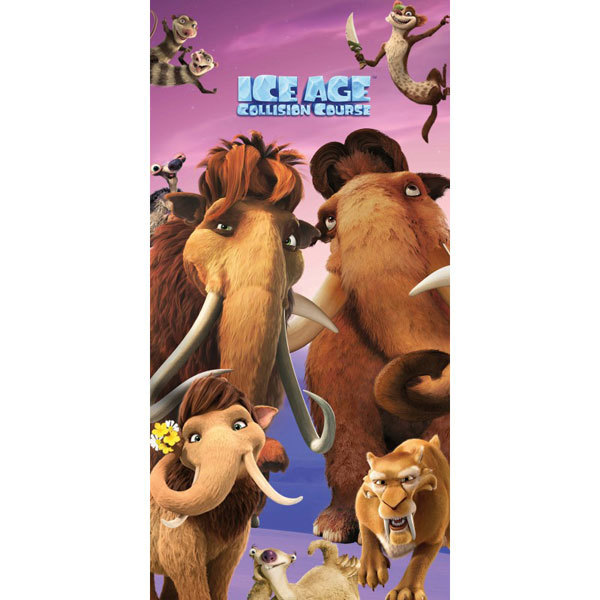 Bavlněná froté osuška Doba Ledová Mamutí drcnutí je nabízena v rozměru 70x140 cm.