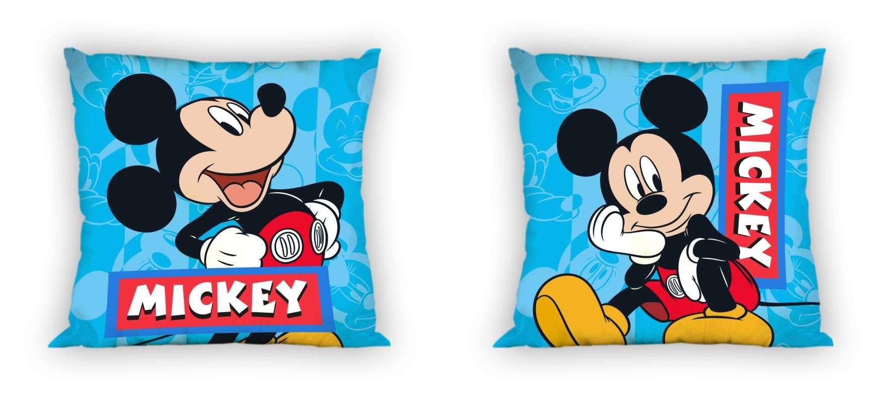 Ta poszewka na poduszkę o wymiarze 40x40 cm zdobi motyw Myszki Miki w delikatnym niebieskim odcieniu, który przyciąga uwagę dzięki dwustronnemu nadrukowi z różnymi motywami na każdej stronie. Wykonana jest ze 100% naturalnej bawełny, która zapewnia przyjemny dotyk, trwałość i łatwą konserwację. Zapięcie na zamek pozwala na szybkie i proste zdjęcie poszewki do prania lub wymiany.