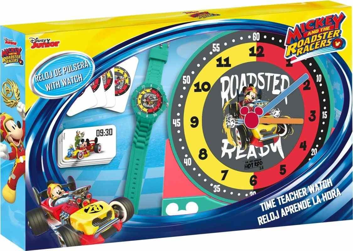 EUROSWAN Hodiny na učení MickeyMateriál: PlastRozměr: 39x25 cmDětské hodiny na učení, sada obsahuje výukové hodiny na stojánku průměr 20 cm, náramkové funkční hodinky, délka řemínku 21 cm, průměr ciferníku 3,5 cm, oboustanné kartičky s časem podle kterých děti určují čas na hodinách. przeczytaj całość