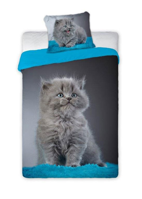 - Uroczy i oryginalny wzór z motywem kotka, który wprowadzi przyjemną atmosferę do sypialni.