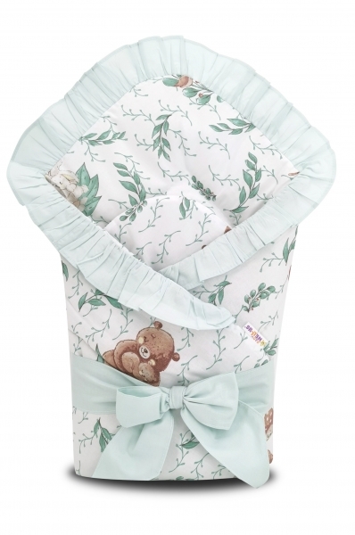 Rozměr cca 80x80cm.(měřeno i s volánkem)Svrchní materiál 100% bavlna.Vnitřek z dutého vlákna - hypoalergenní.Zapínání - stuha a suchý zip.Zavinovačku lze později používat i jako podložku, dečku apod.Vše vyrobeno z kvalitní 100% bavlny.Certifikováno, atest, 1.jakost (zboží určené pro děti).Bavlna...