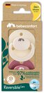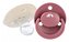 Smoczek z symetrycznym ustnikiem wykonanym z miękkiego silikonu. Zewnętrzna część smoczka ma otwory zapewniające cyrkulację powietrza, aby nie podrażniać wrażliwej skóry wokół ust.
