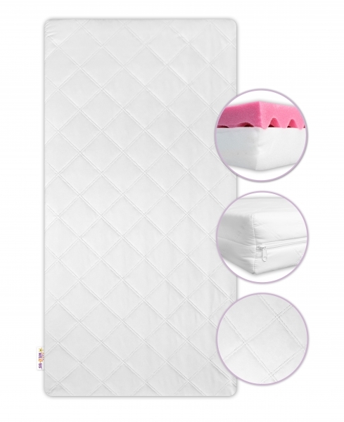 Dětská matrace Baby Nellys.Charakteristika:- zónová vrstva HR pěna je velmi pružná, odolná proti deformaci, dokonale odvádí vlhkost od matrace díky své porézní struktuře (růžová pěna),- matrace je oboustranná,- tuhost matrace: H2,- vysoce kvalitní polyuretanová pěna s vynikající pružností a...