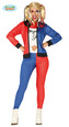 Kostým záporné filmové hrdinky obsahuje tričko, bundu a kalhoty. przeczytaj całość