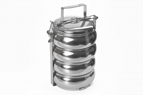4 poschodový termoobedár na prenášanie pokrmov, ktorý dlho zachová ich teplotu. Súčasťou je kovový stojan, vybavený prackou, ktorá zaistí jeho pevné uzatváranie a vrchnú pokrievkuZloženie: nerezObjem: 4 x 1lRozmery obedáru: výška 32 cmPriemer: 16 cm przeczytaj całość