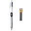 Dodatkowo wyposażony jest w praktyczną wbudowaną gumkę, a dzięki możliwości wymiany wkładów możesz używać długopisu przez długi czas, oszczędzając pieniądze i unikając częstej wymiany przyborów do pisania. W opakowaniu znajduje się 12 sztuk wkładów grafitowych HB o średnicy 0,7 mm, więc możesz od razu zacząć pisać lub szkicować po otwarciu.