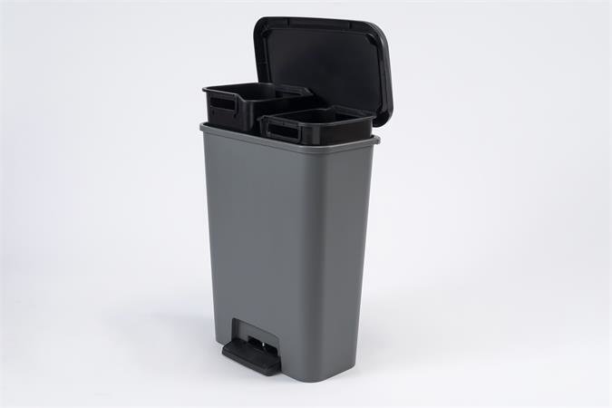 Odpadkový koš "Compatta Duo", tmavě šedá, pedálový, hranatý, 2x 23 l, CURVER 249813