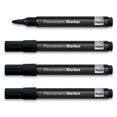 Pernamentní popisovač, černá, 1-3 mm, kuželovitý, 4ks, SIGEL