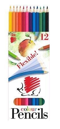 Barevné pastelky, 12ks, šestihranné, ohebné, ICO