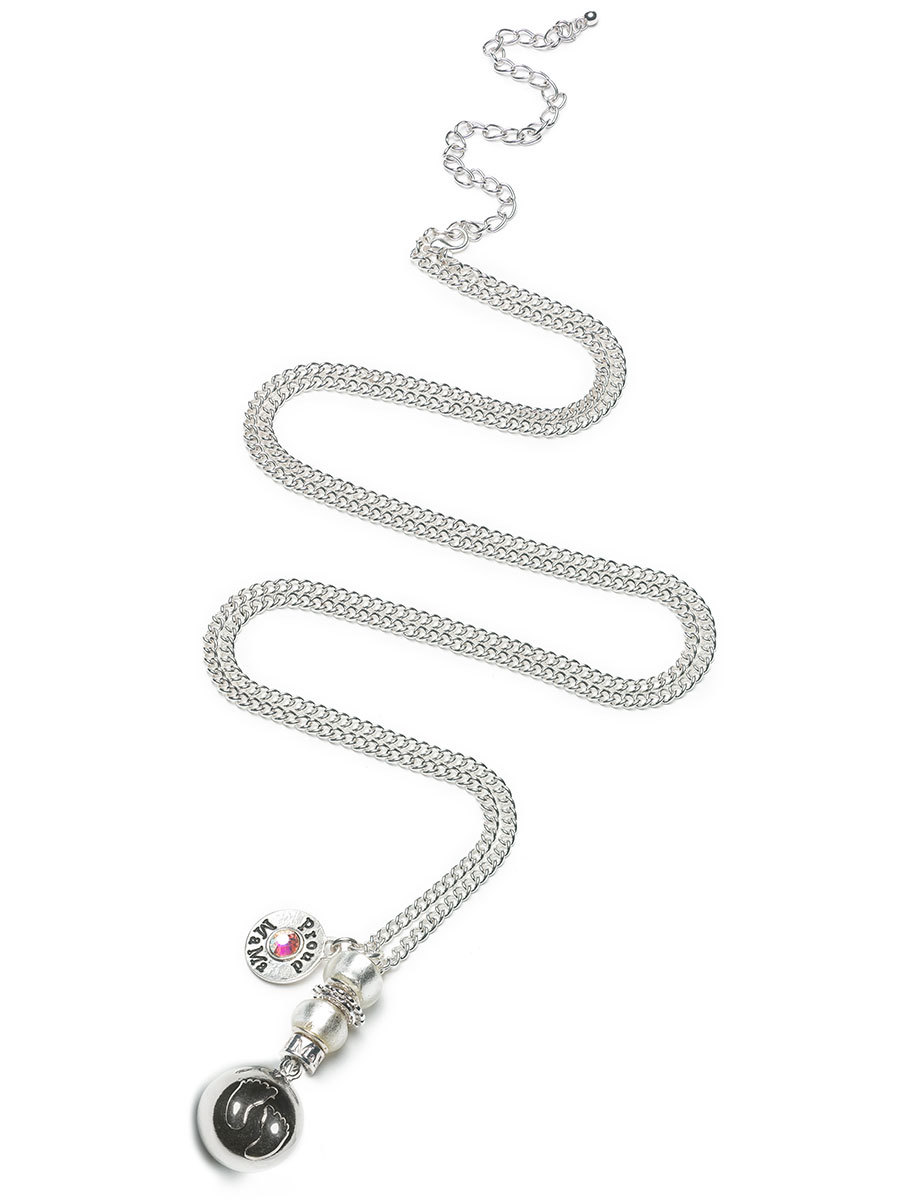 Mexická bola – kulička, barva stříbrná, materiál kov, délka 120 cm, Miminko v bříšku vnímá zvuky už od 20. týdne těhotenství. Jemné cinkání na bříšku má uklidňující účinky jak na maminku, tak hlavně pro miminko. Po narození miminka lze bolu pověsit do jeho blízkosti, do kočárku, do postýlky......