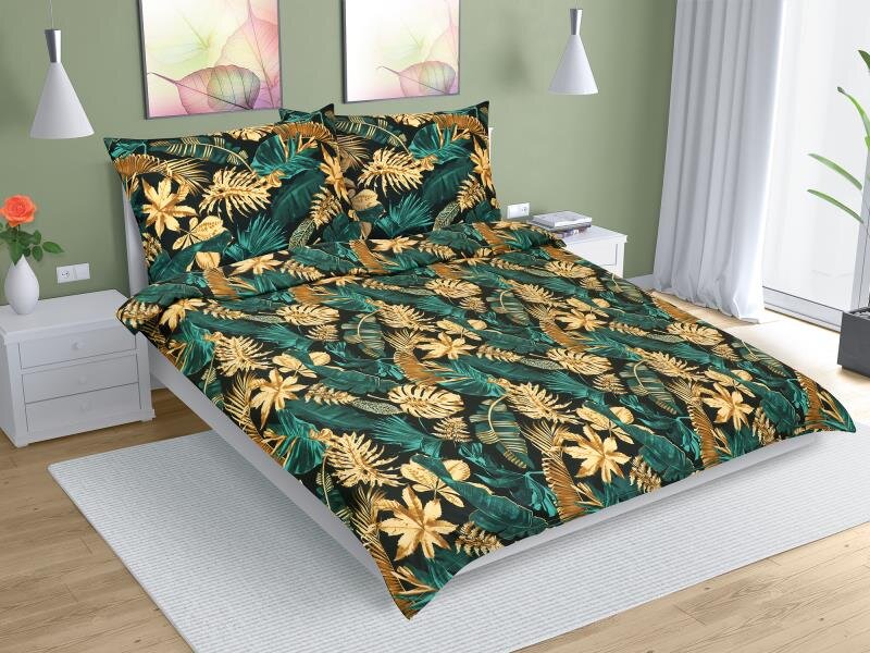 Povlečení bavlna na dvoudeku - Monstera zelená - 240x220, 2ks 70x90 cm (240 cm šířka x 220 cm délka prodloužená)