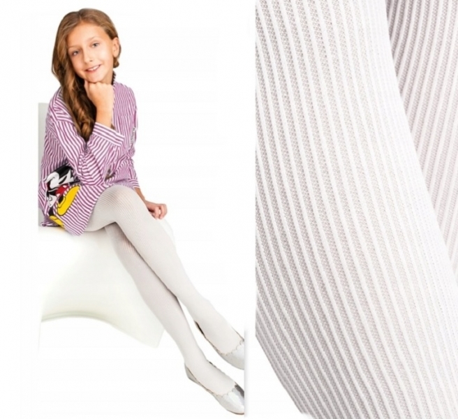 Dětské silonky, punčocháče, proužkované - bílé, vel. 116/122; 116-122 (5-7r)
