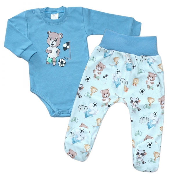 Kojenecké body + polodupačky 2D Fotbal, modré, vel. 68