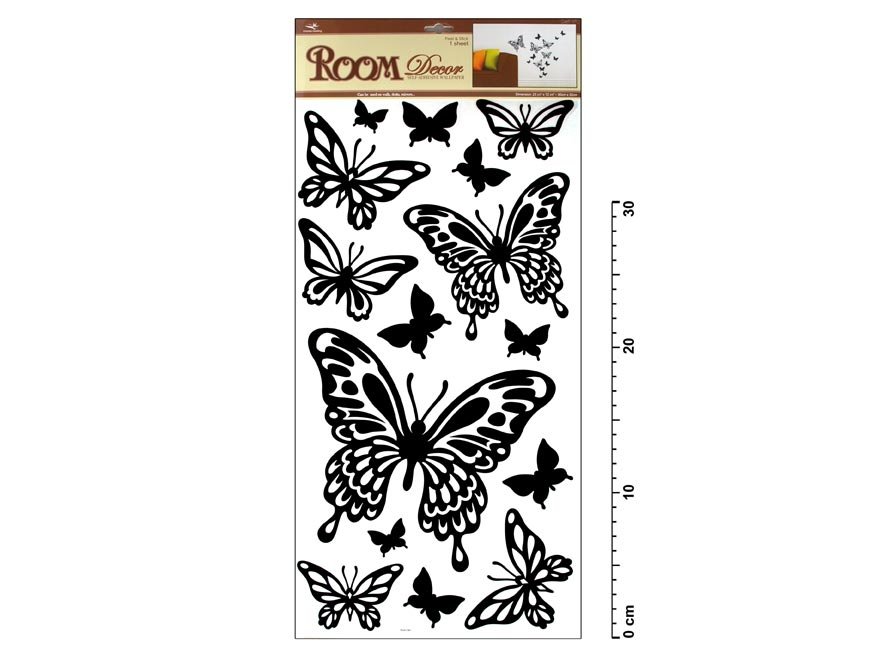 Samoprzylepna dekoracja do pokoju czarne motyle. Naklejki nadają się na ściany, lustra, płytki i inne gładkie powierzchnie.