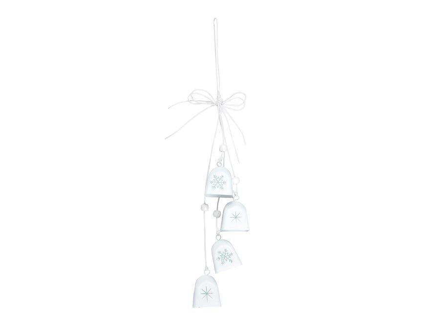 Vánoční dekorace zvonky v bílé barvě se závěsem. Závěs obsahuje 4 zvonečky. V horní části je očko s provázkem, které umožňuje snadné zavěšení. Ozdobu můžete zavěsit na dveře, okno, nebo jinak zkrášlit Vaše bydlení.Délka: 370 mmVýška zvonečku: 35 mmUvedená cena je za 1 ks. przeczytaj całość