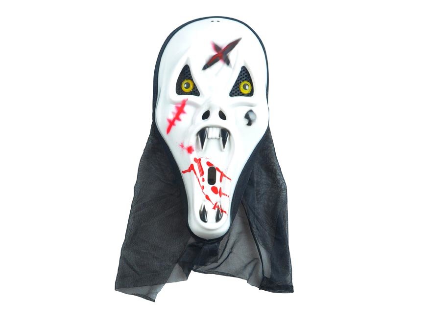 Karnevalová maska Vřískot bílá - jizvy. Věřte, že s touto maskou budete středem pozornosti na každém maškarním plese. Je také ideálním doplňkem na halloweenskou párty. Díky zadní síťce je maska prodyšná a velice dobře drží na hlavě. Padne opravdu každému, je v univerzální velikosti. Díky otvorům...