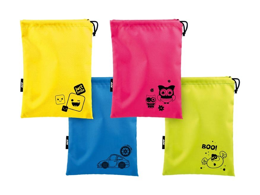 Sáček na cvičební úbor nebo přezůvky - v různých provedeních (růžová, modrá, žlutá, zelená a mix). Pořiďte svým dětem školní vak na přezůvky nebo cvičební úbor. Od této chvíle totiž děti nemusí hledat přezůvky po celé šatně, ale mají je na jednom místěMATERIÁL:- 100% polyesterPOUŽITÍ:Nahoře...