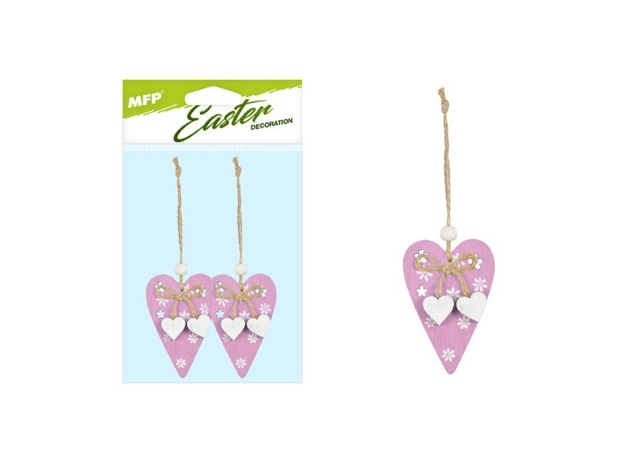 závěs Srdíčka dřevo 2ks/8cm růžová 2221620