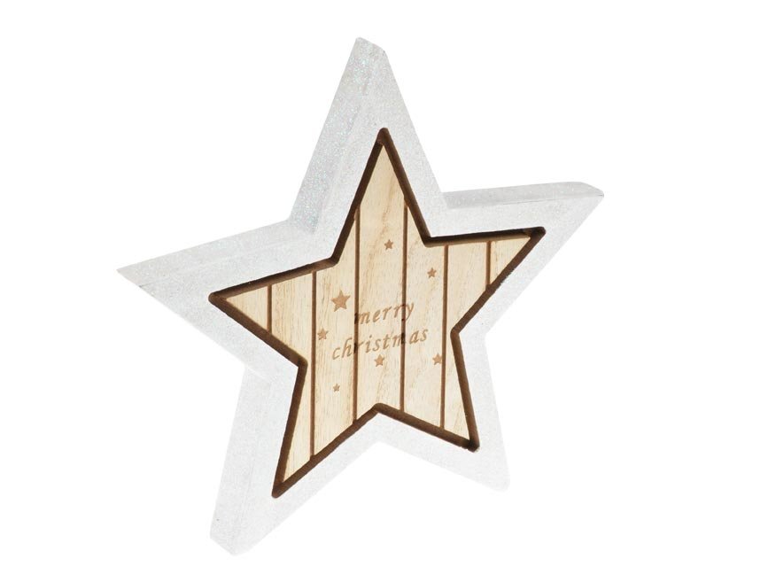 Vánoční dekorace dřevěná hvězda s nápisem „merry christmas“. Můžete použít k ozdobení prázdného prostoru, do okna, na polici a zkrášlit tak Vaše bydlení.Materiál: dřevoVelikost: 195 mmUvedená cena je za 1 ks. przeczytaj całość