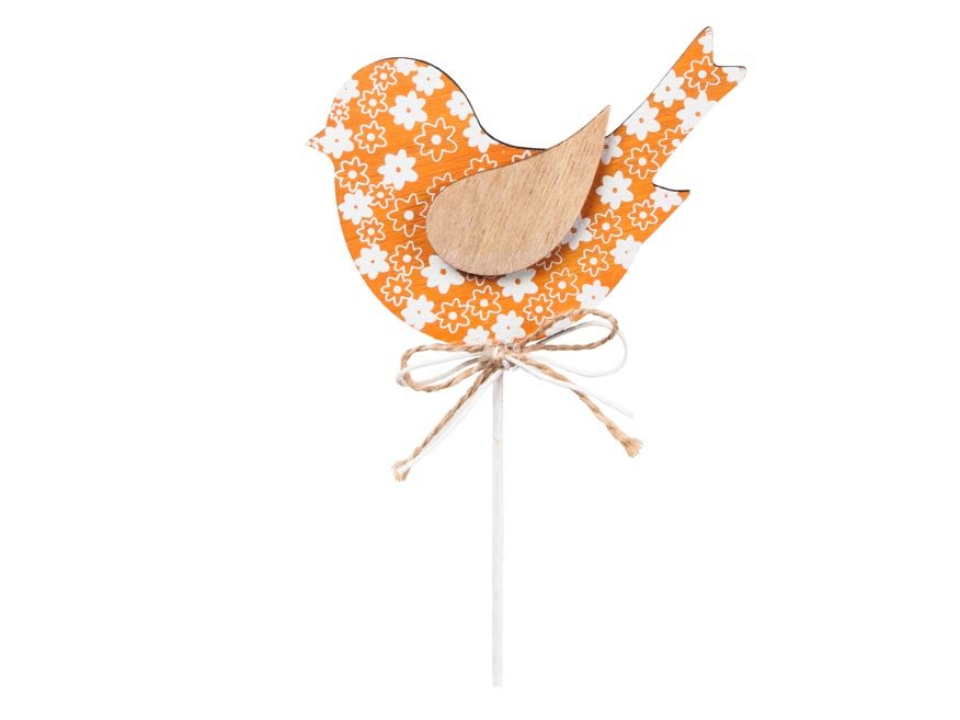 zápich dřevo ptáček 31x11cm oranžová 2221719