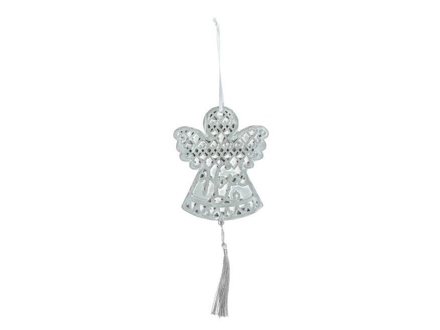 Vánoční ozdoba anděl se závěsem. Ozdoba je vyrobená z betonu. V horní části je očko se stužkou, která umožňuje snadné zavěšení. Ozdobu můžete zavěsit na dveře, okno, nebo jinak zkrášlit vaše bydlení a navodit pocit přicházejících Vánoc.Velikost: 100 mmUvedená cena je za 1 ks. przeczytaj całość