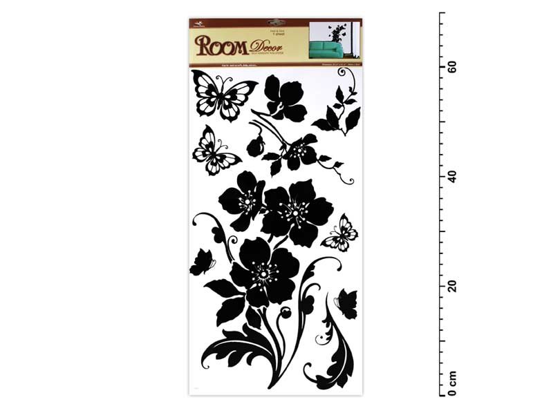 Samolepící dekorace 1042 černé květina s motýli 69x30cm
