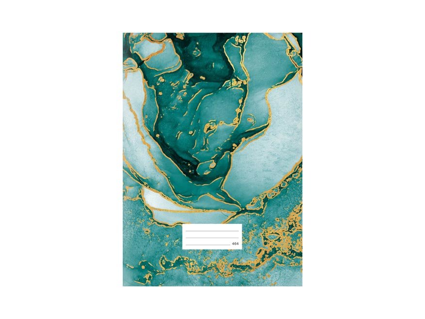 Zeszyt szkolny w linie w formacie A4, w oryginalnych okładkach z matowym laminatem i miejscowym lakierem UV. Strony mają marginesy o szerokości 1,5 cm.