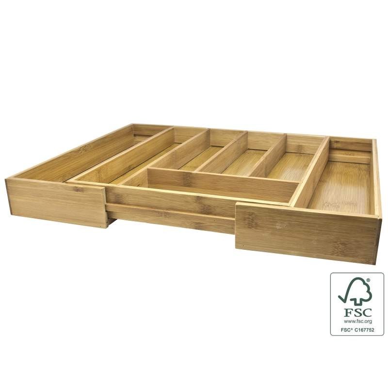 Zorganizuj swoją kuchnię elegancko i praktycznie dzięki elastycznemu bambusowemu wkładowi na sztućce, który oszczędza miejsce i jednocześnie świetnie wygląda.