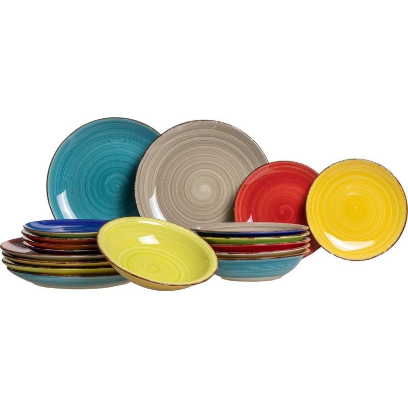 Vneste léto do svého domova s touto 18dílnou sadou nádobí model 'Malaga'.Tato sada je vhodná pro 6 osob.Sada se skládá z:6x jídelní talíř 27 cm6x hluboký talíř 20,5 cm6x snídaňový talíř 19,5 cm przeczytaj całość