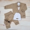 Elegantní oblek na křest nebo svatbu. Módní, pohodlné oblečení.Sada obsahuje:- bavlněné, pohodlné body s dlouhým rukávem, knoflíky a všitým motýlkem-Bunda- elastické kalhoty,-Čepice,- látkové boty.Materiál: 100% bavlna: Body, čepice, 95% Bavlna 5% Polyester: Kalhoty, boty, bunda.Detailní...