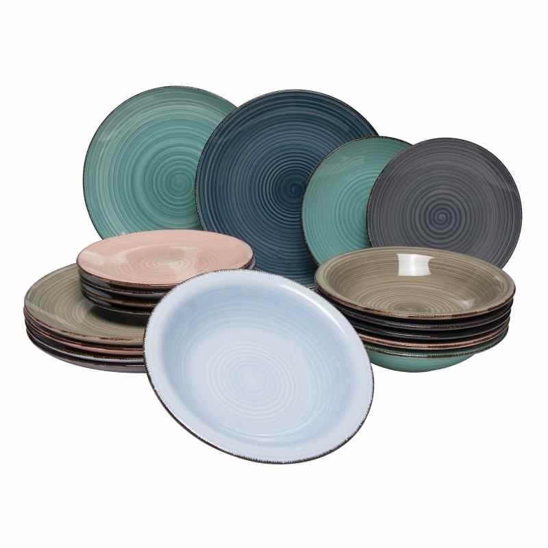 Tato 18-ti dílná sada porcelánového nádobí v barvě máty a hnědé je elegantní a praktická volba pro vaši domácnost. Obsahuje:6 talířů o 27 cm 6 hlubokých talířů o 20,5 cm 6 snídaňových talířů o 19,5 cm przeczytaj całość