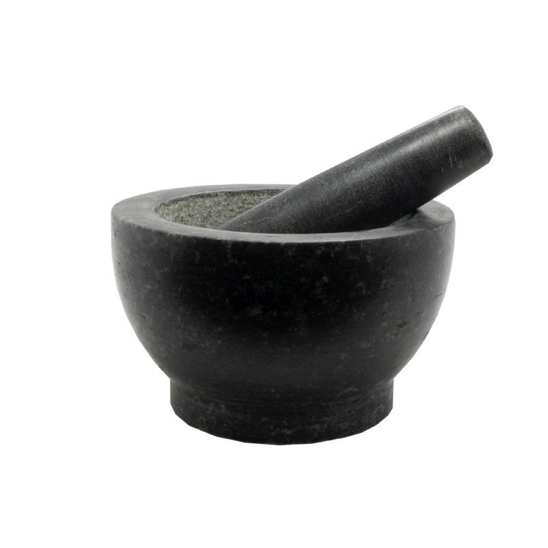 Vyrobeno z masivní žuly. Bylinky a koření se paličkou drtí a míchají. Chuť a vůně se uvolňují během procesu drcení.rozměry 18x11 cmbarva černá przeczytaj całość