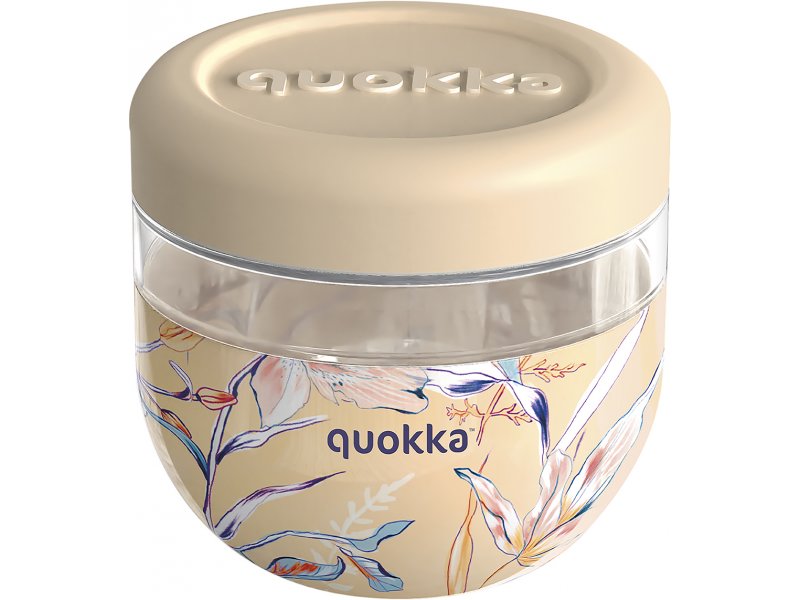 Lekki, wytrzymały pojemnik Quokka Bubble z zakręcanym wieczkiem i antypoślizgowym silikonowym rękawem nadaje się do przenoszenia przekąsek do szkoły, do pracy oraz na wycieczki. Niezawodne, w 100% szczelne zakręcane zamknięcie chroni zawartość pojemnika przed wylaniem lub wysypaniem. Wysokiej jakości tworzywo sztuczne nie absorbuje zapachów.